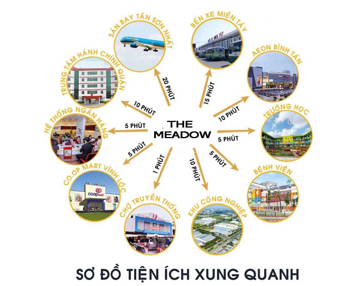 Nằm ngay tại mặt tiền Trần Văn Giàu, xã Vĩnh Lộc B, huyện Bình Chánh, The Meadow tận hưởng vị trí đắc địa cận kề mạng lưới giao thông quan trọng của khu Tây Sài Gòn. Tuyến đường lớn như Tỉnh Lộ 10, Tỉnh lộ 824, Đại Lộ Nguyễn Văn Linh, Quốc Lộ 1A và cao tốc Trung Lương. Một khu vực phát triển nhanh chóng và đầy tiềm năng của TP. Hồ Chí Minh. Sự lựa chọn chiến lược của Gamuda Land không chỉ giúp cư dân dễ dàng kết nối với trung tâm thành phố mà còn tận hưởng không gian yên bình của vùng ngoại ô. Gần các trục đường chính và cụm tiện ích, dự án hứa hẹn mang lại sự thuận tiện và giá trị gia tăng cho cư dân.